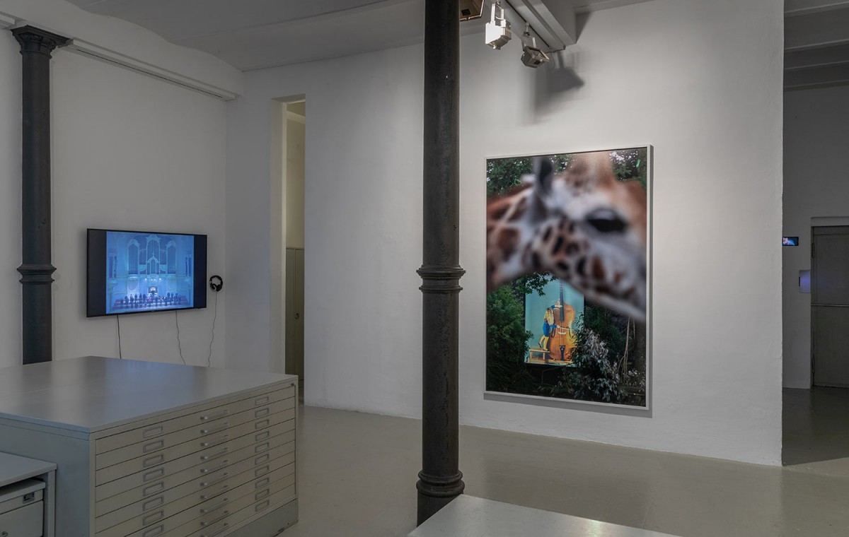 In the gallery’s office space, as well as two large-format colour photographs taken while the artist was working on the three-channel video and sound installation Infra Voice in 2018, the video installation the lord loves changes, it’s one of his greatest delusions can also be viewed. Here, too, Kahrs pursues her interest in the modulation of music and its significance in a given period or in different contexts. the lord loves changes, it’s one of his greatest delusions is based on two iconic pieces by Julius Eastman, The Holy Presence of Joan d’Arc and Gay Guerilla, and was first shown at MaerzMusik. In Annika Kahrs’ adaptation of the Eastman composition, an organist plays a concert organ on the stage of the main hall in Hamburg’s Laeiszhalle while 26 performers gather to form a choir which whistles rather than sings – sometimes along with the organ’s playing and sometimes in opposition to it.