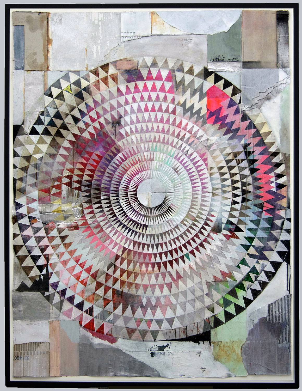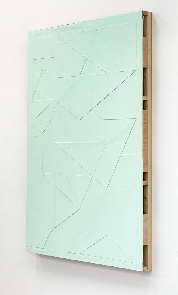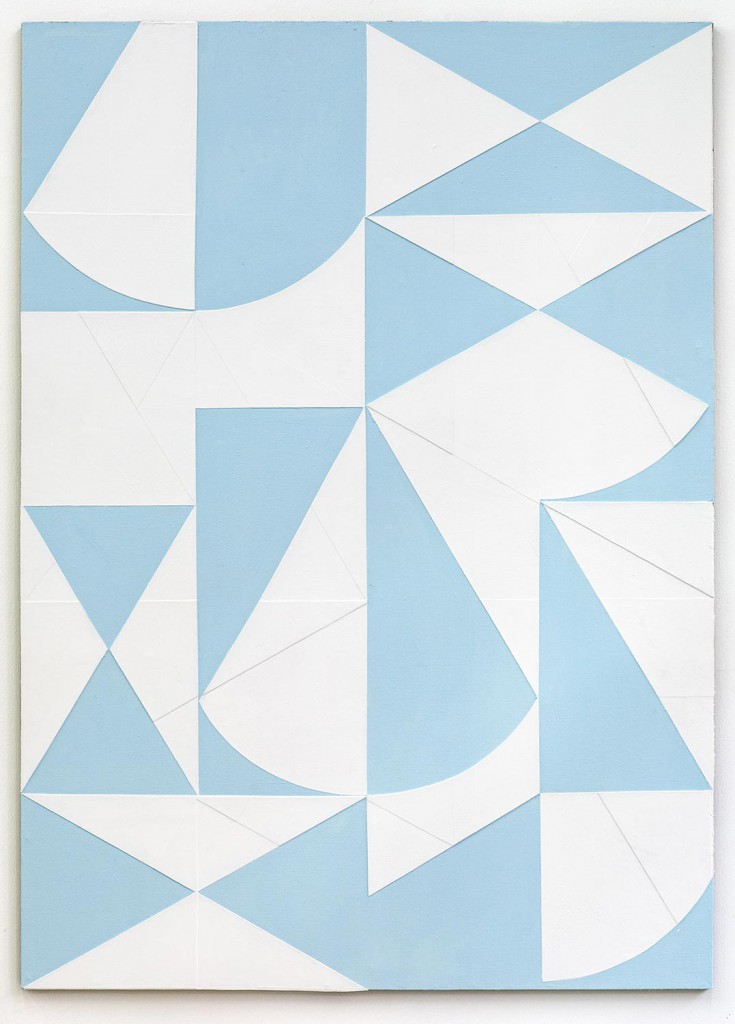 Michael Conrads Exzentrische Dreieckskomposition (Zygote) N° I 2013 Gesso, acrylic, pigment, oil and shellac on newspaper, on japanese paper 165 × 125 cm Photo: Tim Schröder