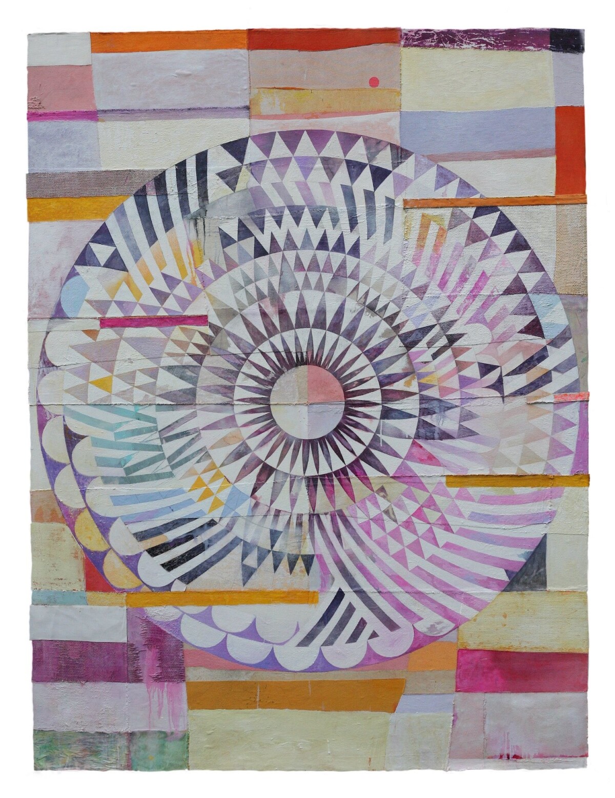 Michael Conrads Life in the 5th Dimension 2015 Fabric, acrylic, pigment and spray paint on canvas 211 × 161 cm