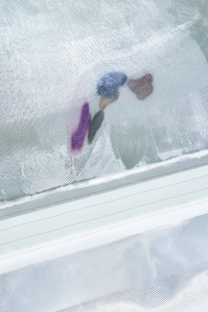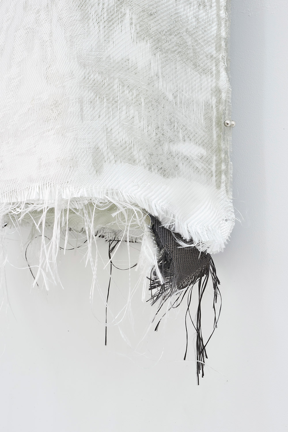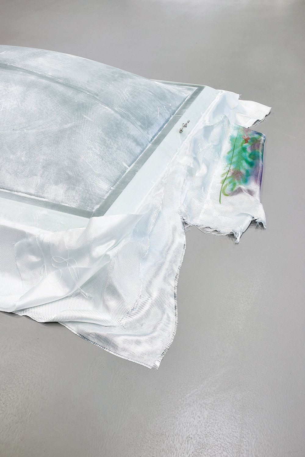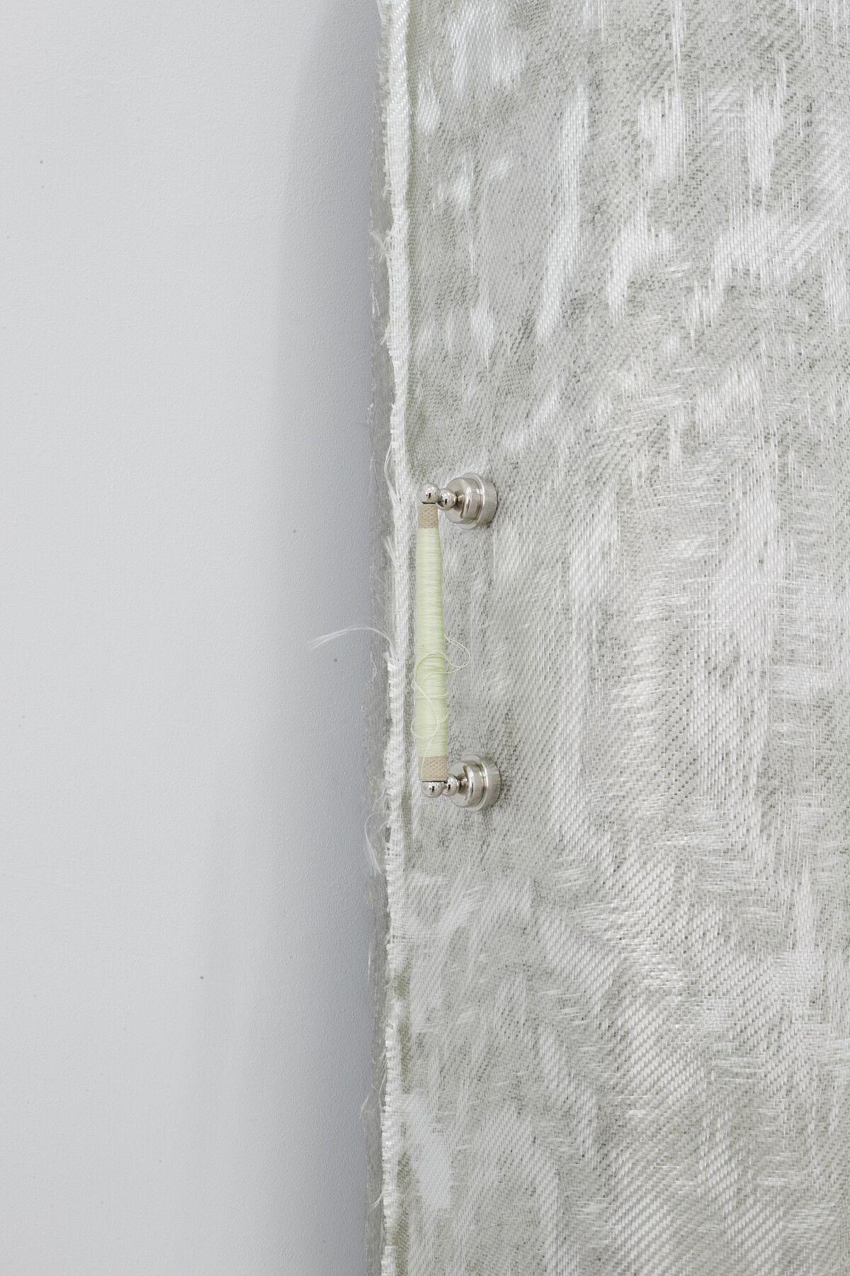 Noémi Barbaglia Windows are green, Frozen is stuck, Got like to handle, Ain‘t beclaimed in its fog (Detail) 2022 Screen printing on glass fiber, metal, magnets, resin, 220 × 150 cm Photo: Helge Mundt