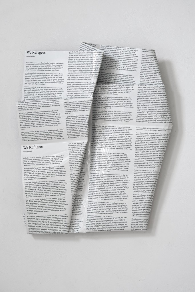 Olaf Metzel We Refugees 1 2020 Aluminium, digital print, stainless steel 88 x 71 x 15 cm Photo: Leonie Felle