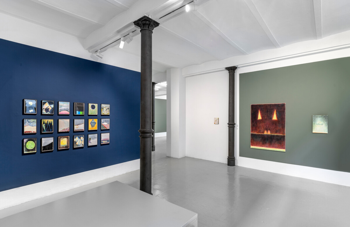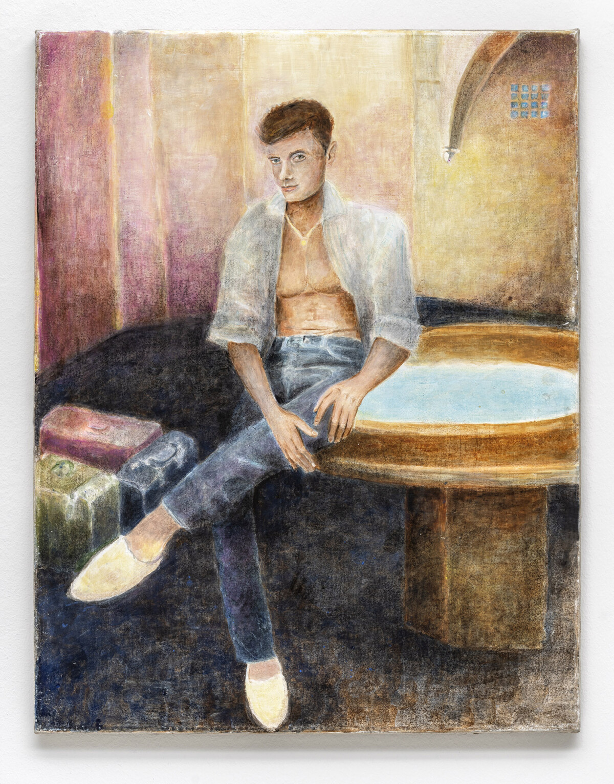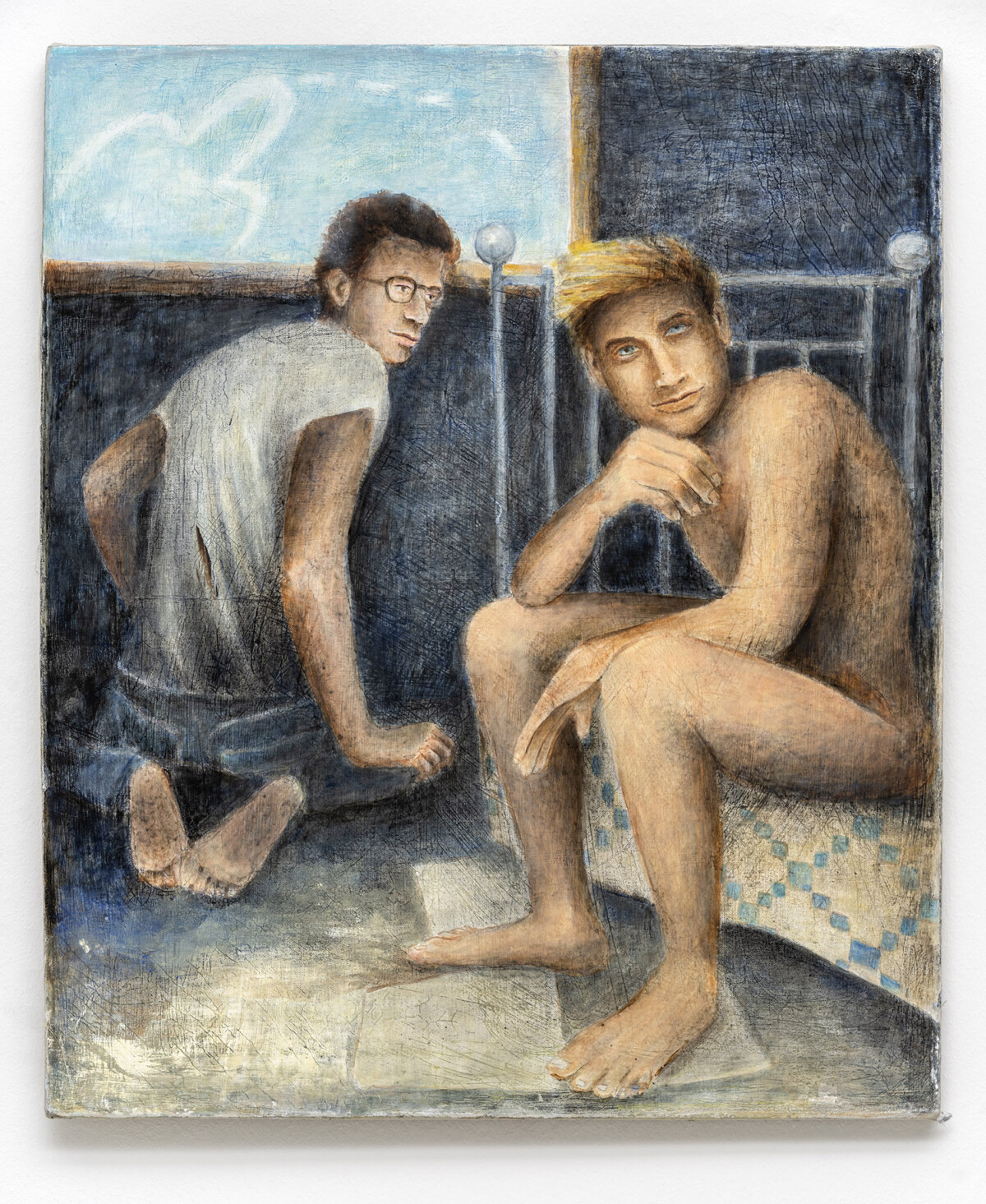 Inspired by presentations of ancient art, Brungs approaches the protagonists with a complex technique of an imaginative realistic style of transparent oil paint on chalk ground, mostly in a middle-sized format. The different scenes are marked by a singular tension. Through the multi-layered application of colour, the figures immerse into a foggy fuzziness between two poles: distanced cold and intimacy. On this occasion, Brungs establishes possible scenarios in which he rewrites history, always being aware of the potential likelihood of his narration.