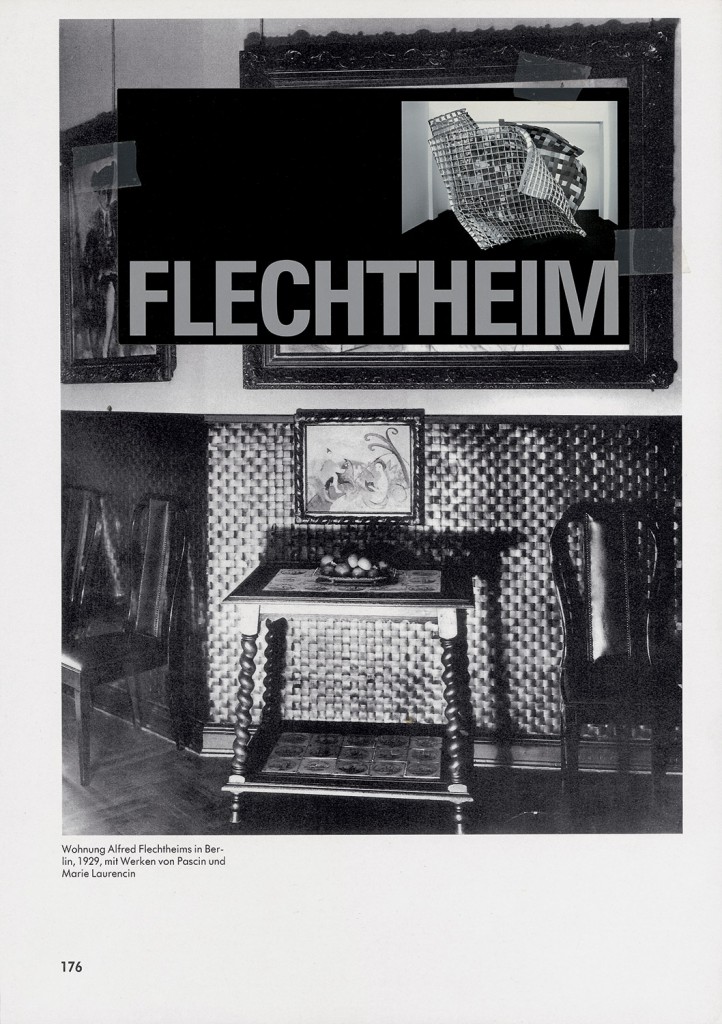 Ein älteres Beispiel abstrakter Porträtkunst ist Metzels Skulptur Flechtheim, die 2001 entstand und sich dem gleichnamigen legendären jüdischen Kunsthändler- und sammler, einem der wichtigsten Förderer avantgardistischer Kunst in der Weimarer Republik, widmet. Von der Skulptur, bestehend aus bunten ineinander verflochtenen Plexiglasstreifen, zeugt in der Ausstellung eine Serie skizzenhafter Collagen, die als Vorstudien den Ideenfindungsprozess dokumentieren. Ausgangspunkt für Metzels Annäherung an die historische Figur war ein Foto von Flechtheims Berliner Wohnung, auf das er im Zuge seiner Recherchen gestoßen war. An den Wänden zeigte die Aufnahme eine aufwendig geflochtene Tapete, darauf installiert Werke der Moderne. Dieses Detail, die besondere Beschaffenheit einer Oberfläche, wurde zum abstrakten Stellvertreter und Charakteristikum. Die Vorgehensweise ist bezeichnend für Metzel, der auch in anderen Arbeiten die Ornamentik strukturierter Oberflächen, beispielsweise das Lochmuster an den Decken langer Verwaltungsgänge, wie aktuell anhand der Arbeit Sozialtapete im Hamburger Kunstverein zu sehen, aufgreift und als bildhauerisches Gestaltungsmoment verwendet.