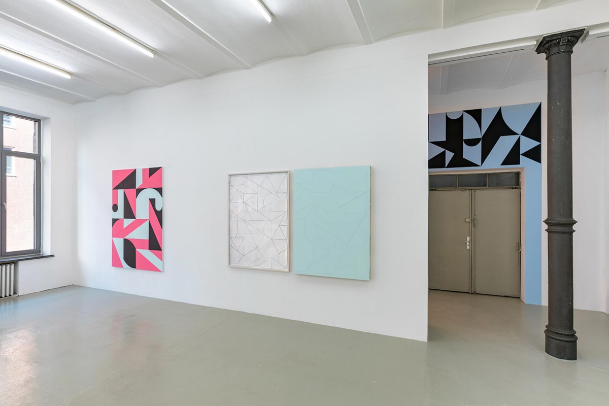 Entsprechend reduziert, geradezu minimalistisch ist für diese Ausstellung exklusiv eine raumgreifende Wandgestaltung entstanden, die im direkten Dialog mit den Arbeiten auf Leinwand und Holz steht. Auch hierbei werden kunstgeschichtliche Vertreter zitiert.