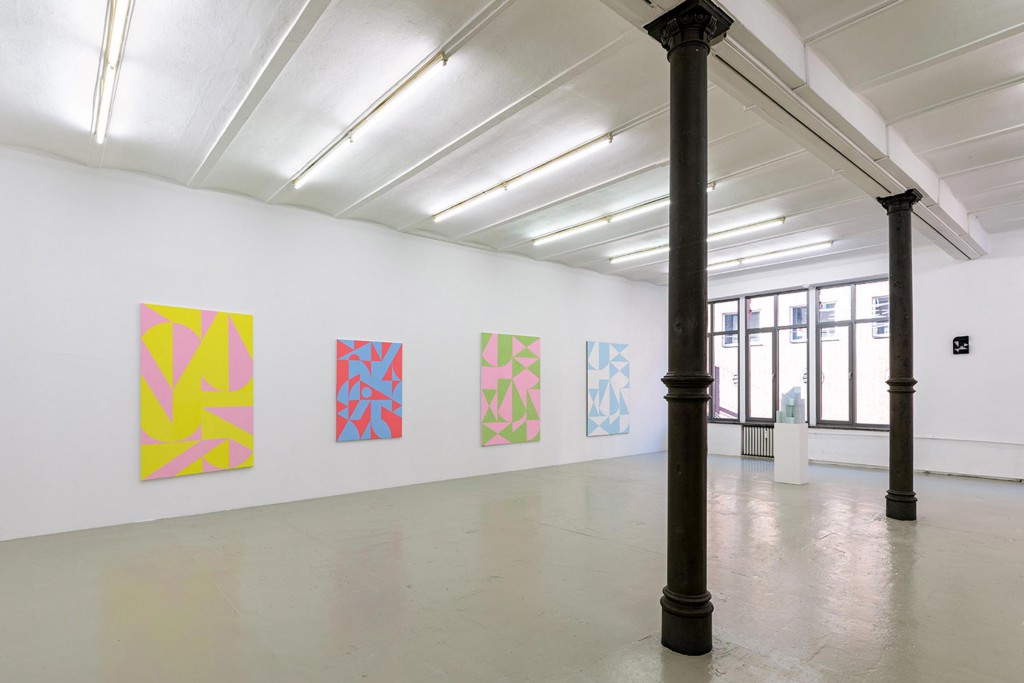 Diese wurden im 3-D-Druckverfahren speziell für diese Ausstellung realisiert und bilden eine ganz neue eigenständige Verknüpfung von plastischer Weiterführung der im Wortsinne dreidimensionalen Bildelemente und modularen Grundgedanken.